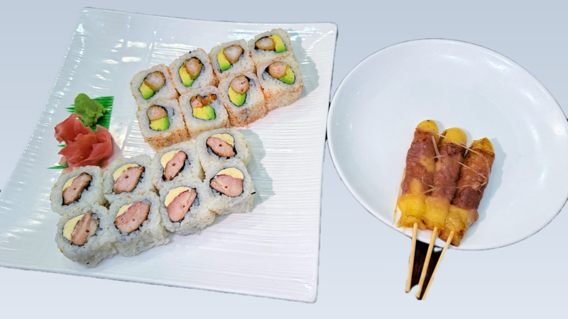 6 Sushi assortimment5 brochettes: 1 boeuf au fromage, 1 boeuf,